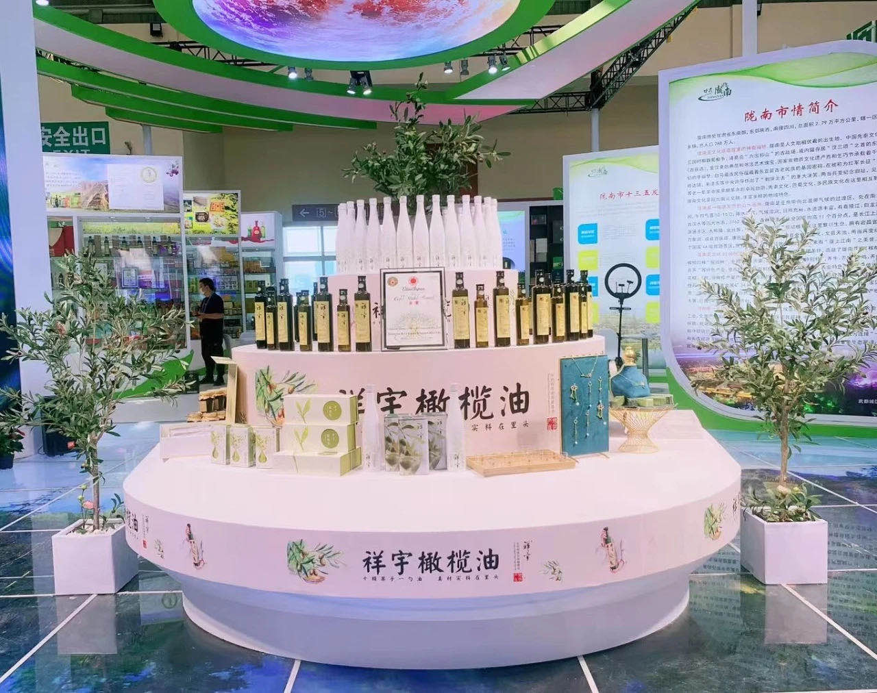 在本屆蘭洽會(huì)上,祥宇公司不僅展示了特級(jí)初榨橄欖油、橄欖茶、橄欖菜、橄欖果、橄欖護(hù)膚品、橄欖保健品、