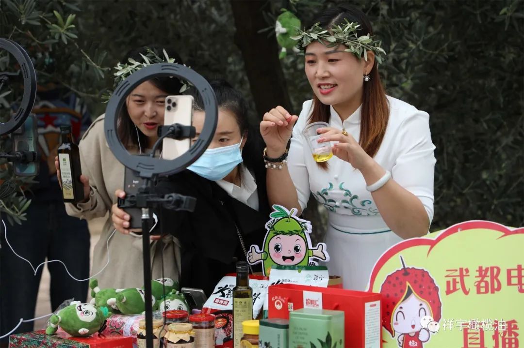 和武都區(qū)桔柑鎮(zhèn)賀家坪油橄欖基地以及直播帶貨現(xiàn)場。